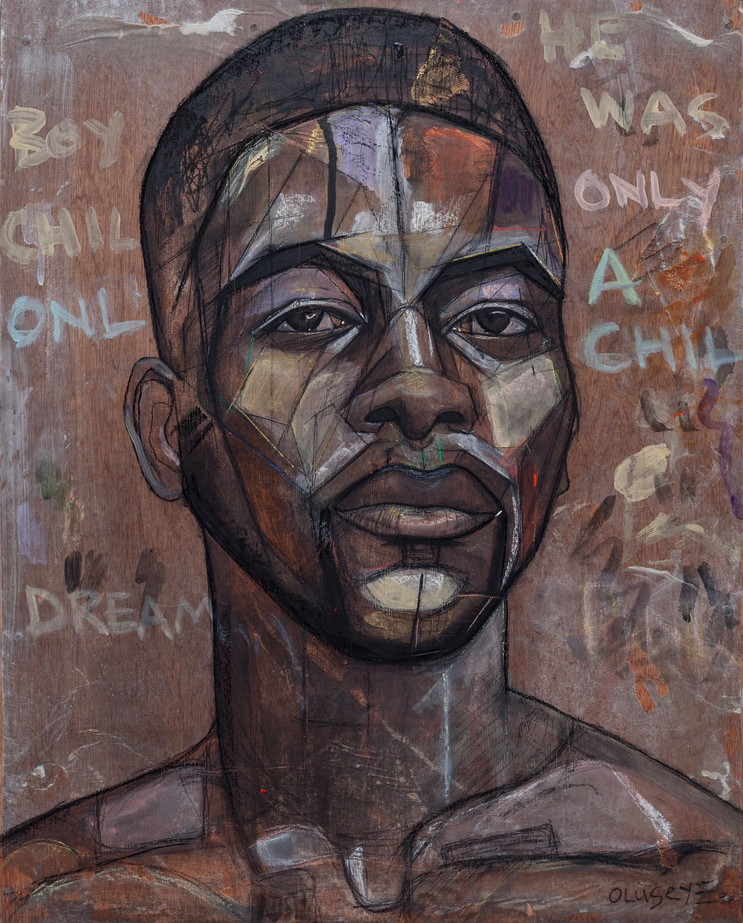 Oluseye is fascinated by the interplay of seemingly dichotomous ideas – Christianity and indigenous African beliefs; vulnerability and strength; spirituality and sexuality; socio-politics and pop-culture, and how these ideas collide and reconcile to shape perception and identity. Working across media, he creates paintings, photography, performances and installations that explore notions of identity, value, representation and existentialism with regards to Black masculinity.